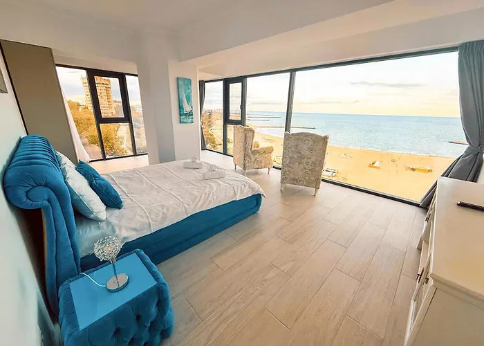 オヴィディウ広場からほんの0.5kmにあるMaritimo Luxury Aparthotel コンスタンツァ は海の景色を望むル-ム等を提供します. 24時間体制のフロント,24時間警備体制とハウスキ-ピングも構内にあります.